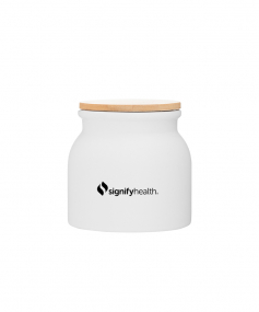 16.9 oz stoneware: matte white out / glossy white in with push-on bamboo lid; Hand wash recommended; Microwave safe with non-metallic imprint; 4 3/16 h x 4 3/16 (w/handle) w ; 500mL.