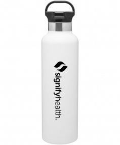 24 oz powder coated double wall 18/8 stainless steel thermal bottle with copper vacuum insulation, threaded gear-shaped insulated lid and carrying handle Complies with FDA, Prop 65. 11.25" H x 3" W
